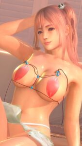 青と黒い布。布というかほぼ紐。どうやって着るのか水着Tear1。