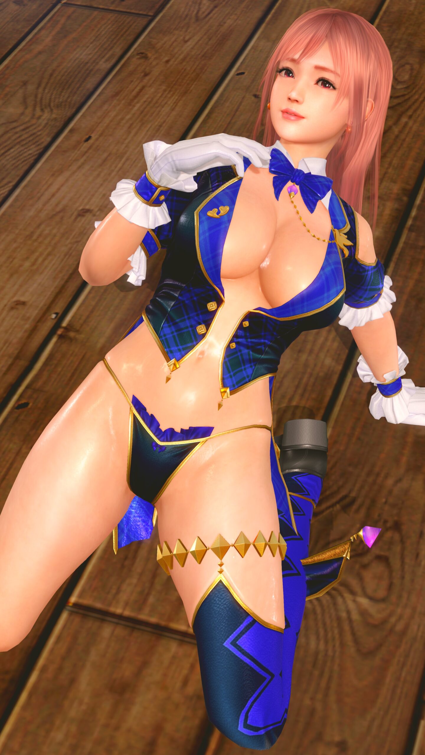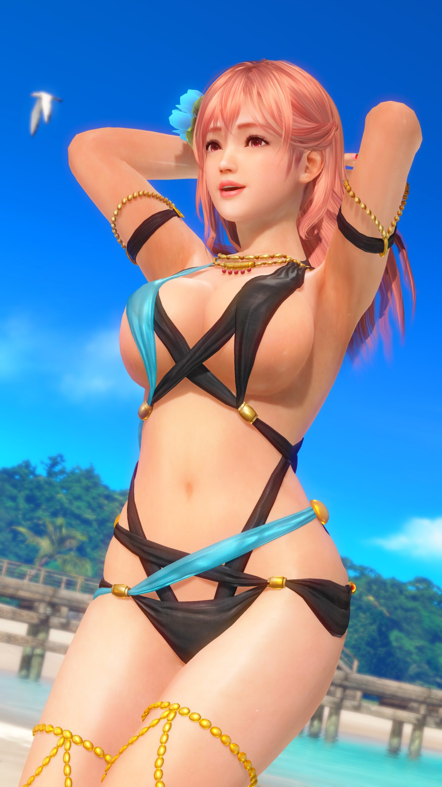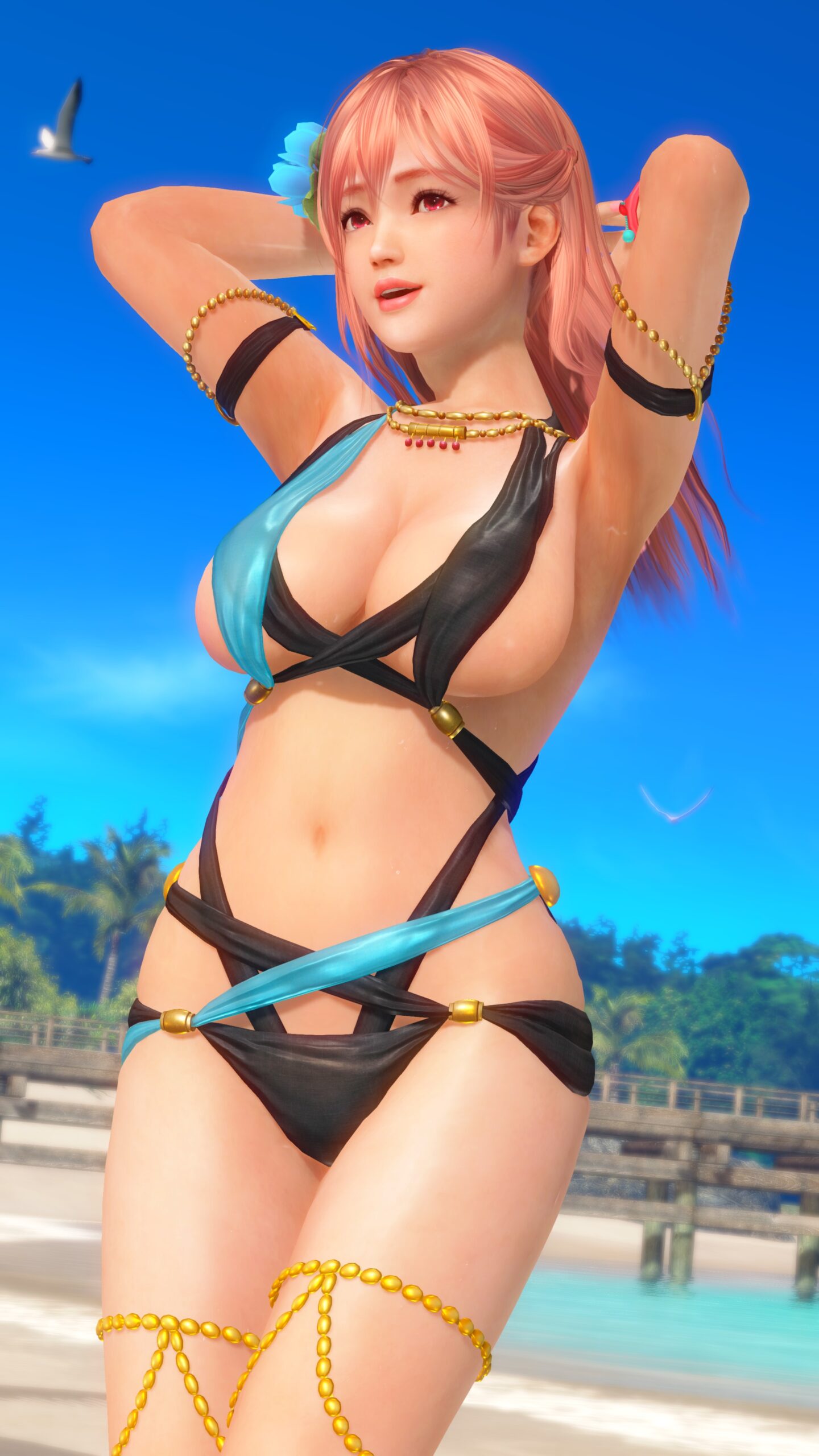 青と黒い布。布というかほぼ紐。どうやって着るのか水着Tear1。