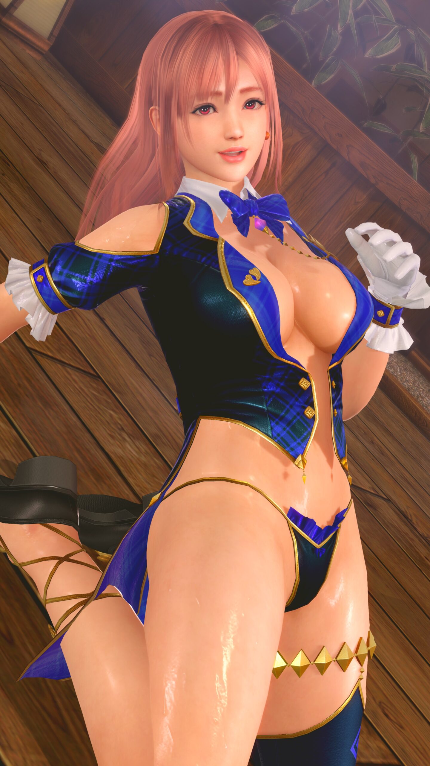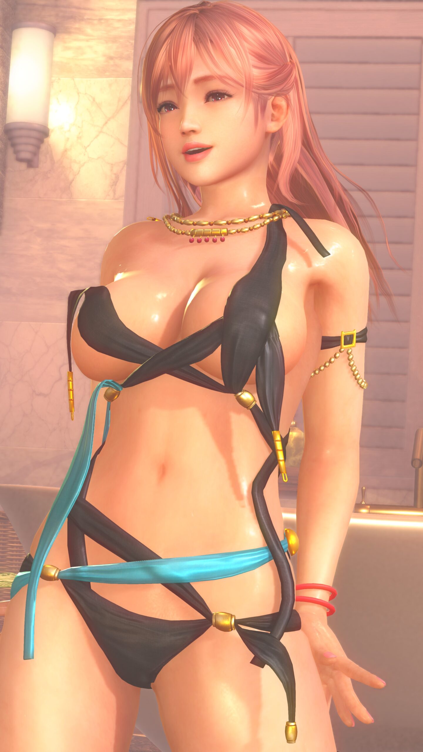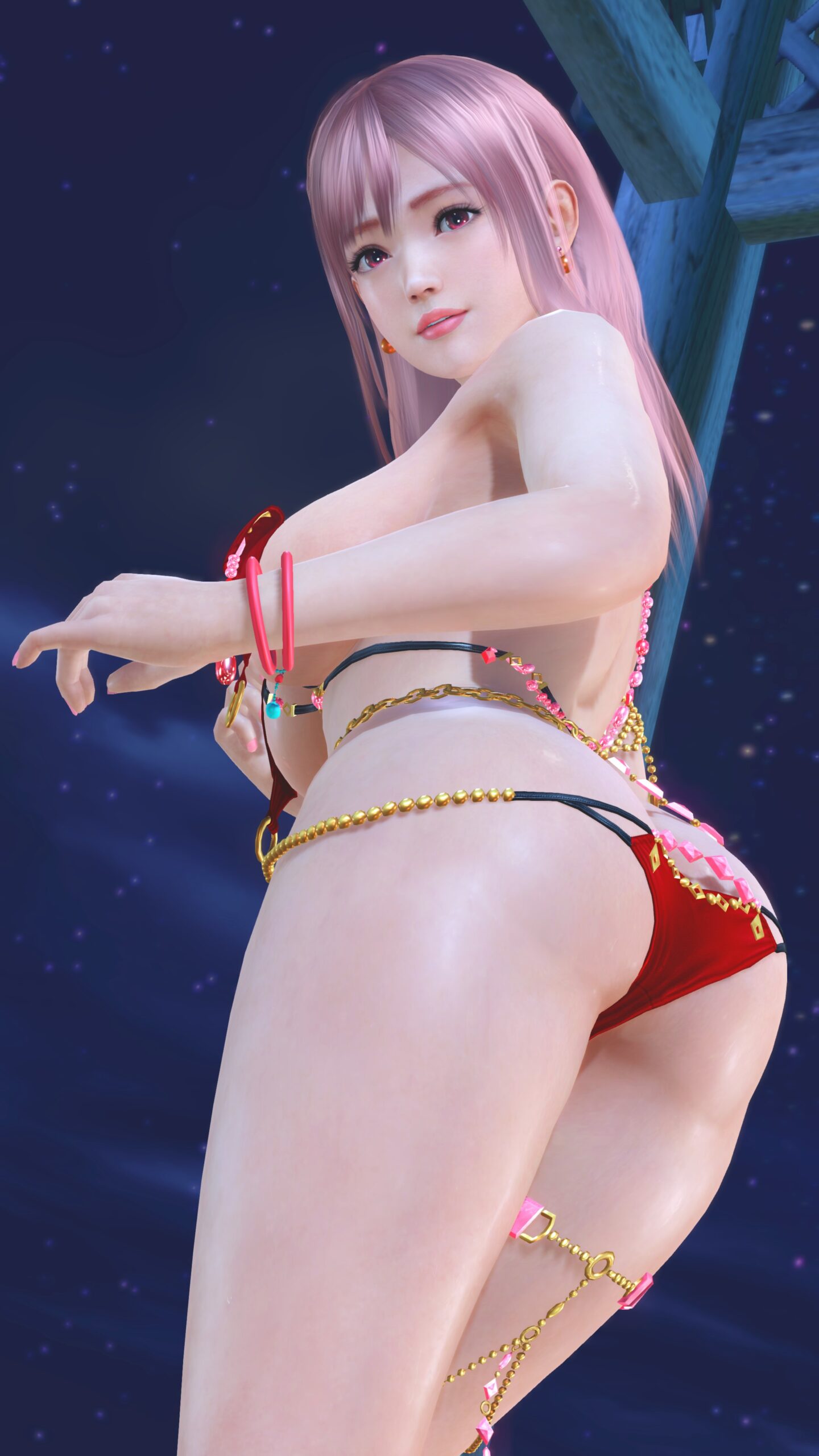 青と黒い布。布というかほぼ紐。どうやって着るのか水着Tear1。